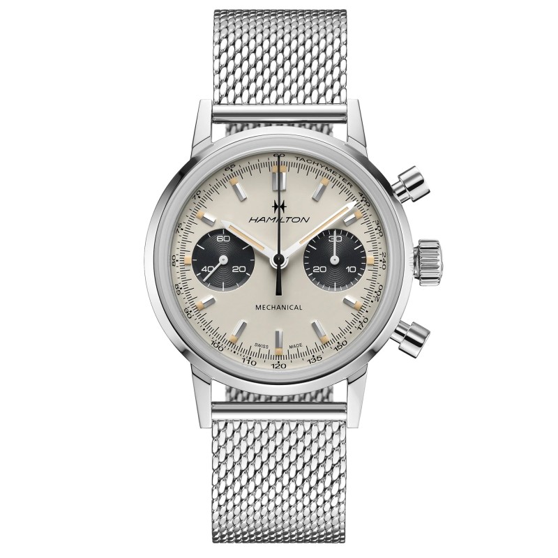Intra-Matic Chronograph H: assapora l’emozione del battito del cuore del movimento ad ogni carica di corona! Animato dal nuovo esclusivo movimento cronografico a carica manuale H-51, questo segnatempo dimostra di avere carattere. Un vetro zaffiro bombato con doppio trattamento antiriflesso protegge l’iconico quadrante effetto “panda”, infondendo tutta la forza della tradizione orologiera a questa versione meccanica di un amato modello di ispirazione vintage.