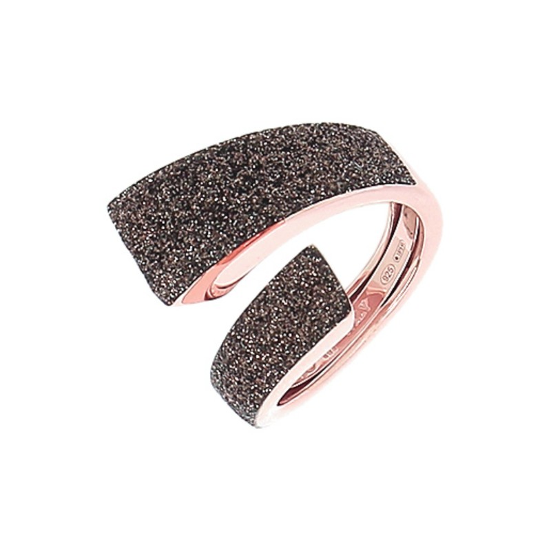 Anello contrarie della collezione POLVERE DEI SOGNI in argento con finitura in oro rosa lucido e polvere di diamanti color bronzo.