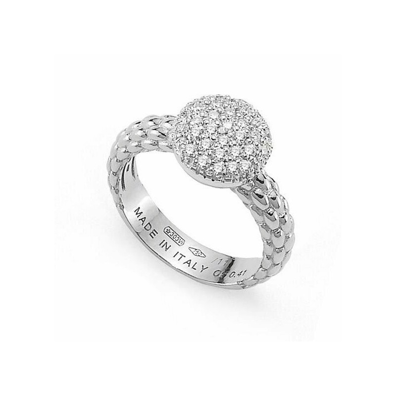 Eleganza senza tempo: anello FOPE AN648 in Oro Bianco 18kt, con un castone tondo impreziosito da Pavè di Diamanti.