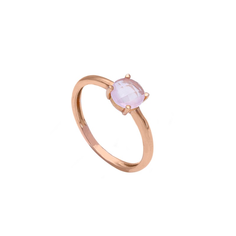 Anello in oro rosa 18kt con cristallo sfaccettato rosa tondo.
