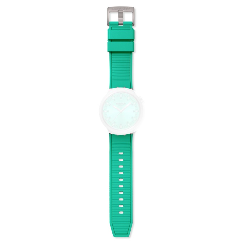 Cinturino in gomma verde texturizzata con fibbia in acciaio sabbiato per modello Swatch Big Bold.