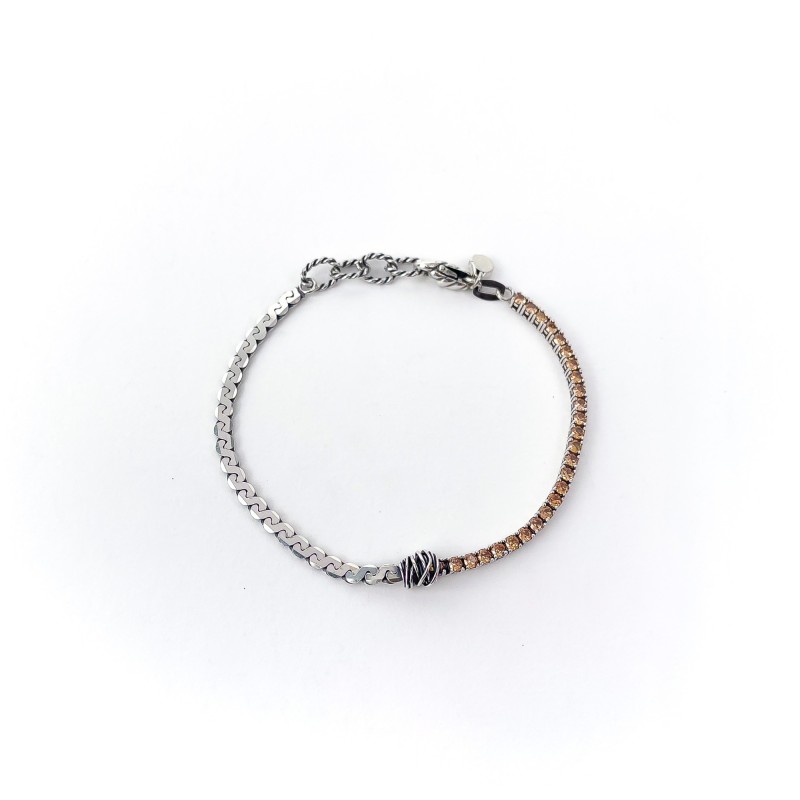 Bracciale in argento composto da catena piatta a torchon e tennis in zirconi fancy yellow.