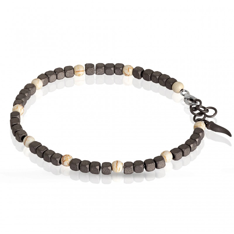 Bracciale in titanio, 10 sfere di pietra dura e un charms pendente in titanio.