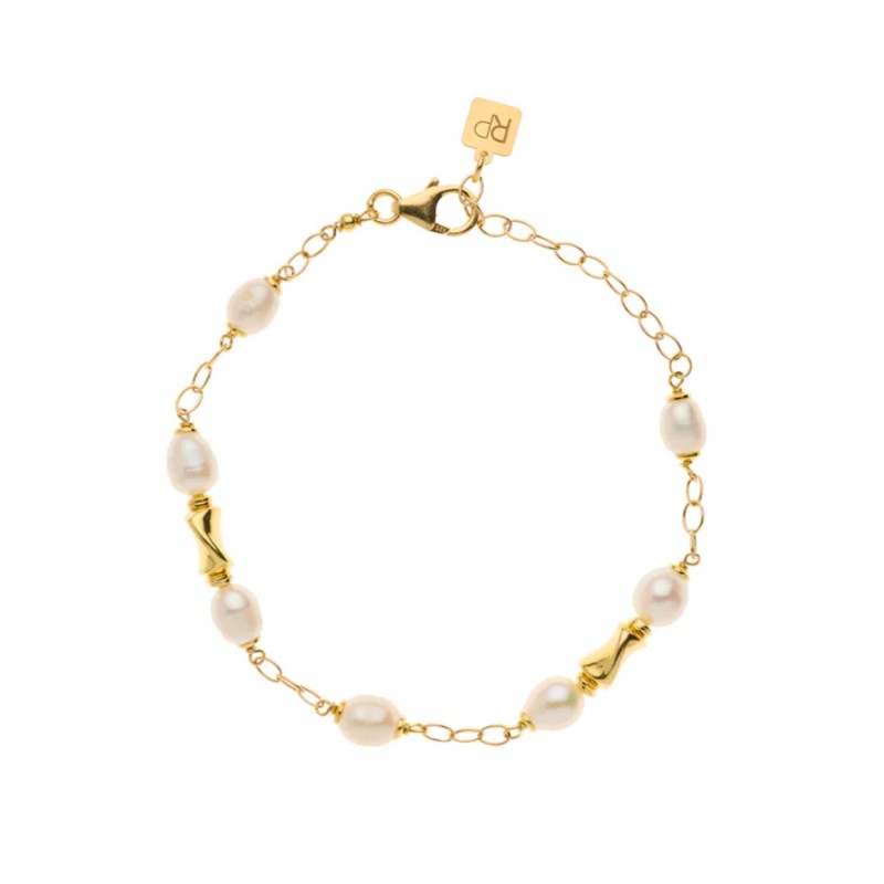 Bracciale in argento 925 placcato oro giallo e perle naturali