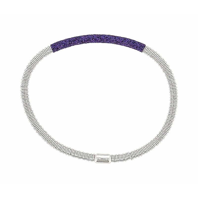 Bracciale in argento elasticizzato con anellini e barretta con finitura in polvere di diamanti color viola Londra.
