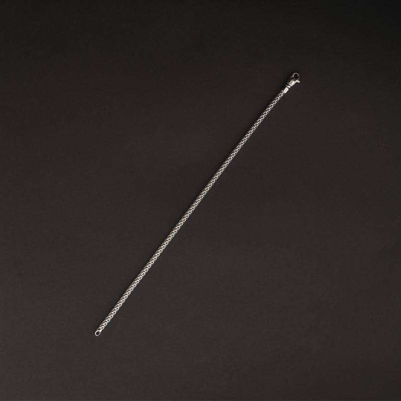 Bracciale in oro bianco 18kt in maglia Novecento, sintesi dello stile e dell'eleganza minimale della maison.