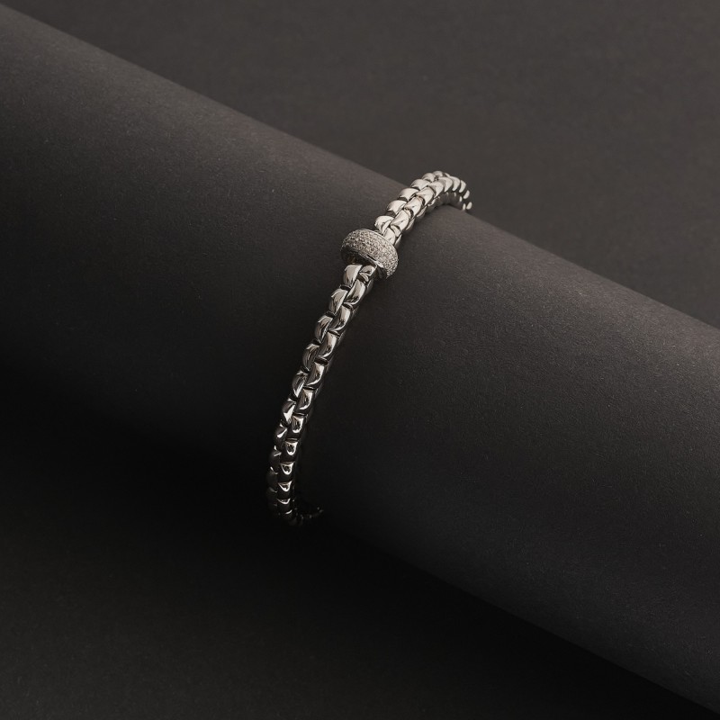 Bracciale in oro bianco 18kt con tecnologia Flex'it che ne permette il facile indosso grazie alle maglie elasticizzate.