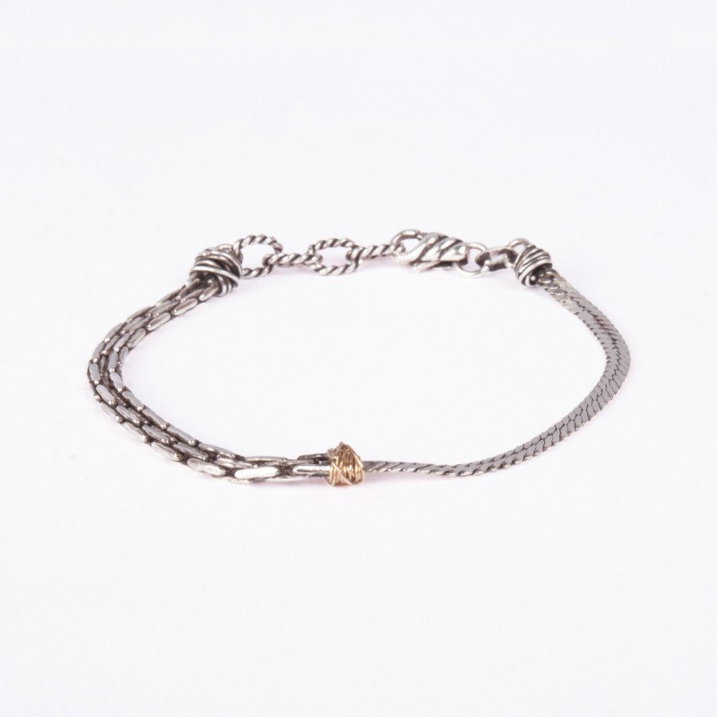 Bracciale con catena in argento 925‰ e nodo in oro 18kt.