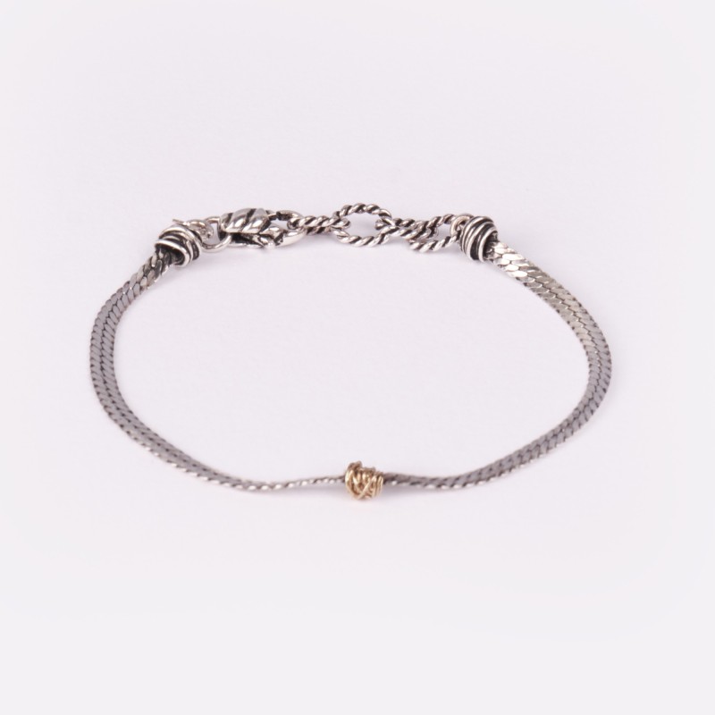 Bracciale con catena in argento 925 ‰ e nodo in oro 18kt.