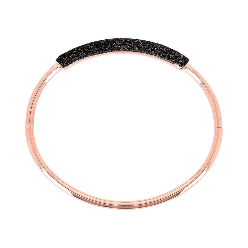 Bracciale a canna tonda con elastico interno ed elemento a placca con finitura con polvere di diamanti color nero.
