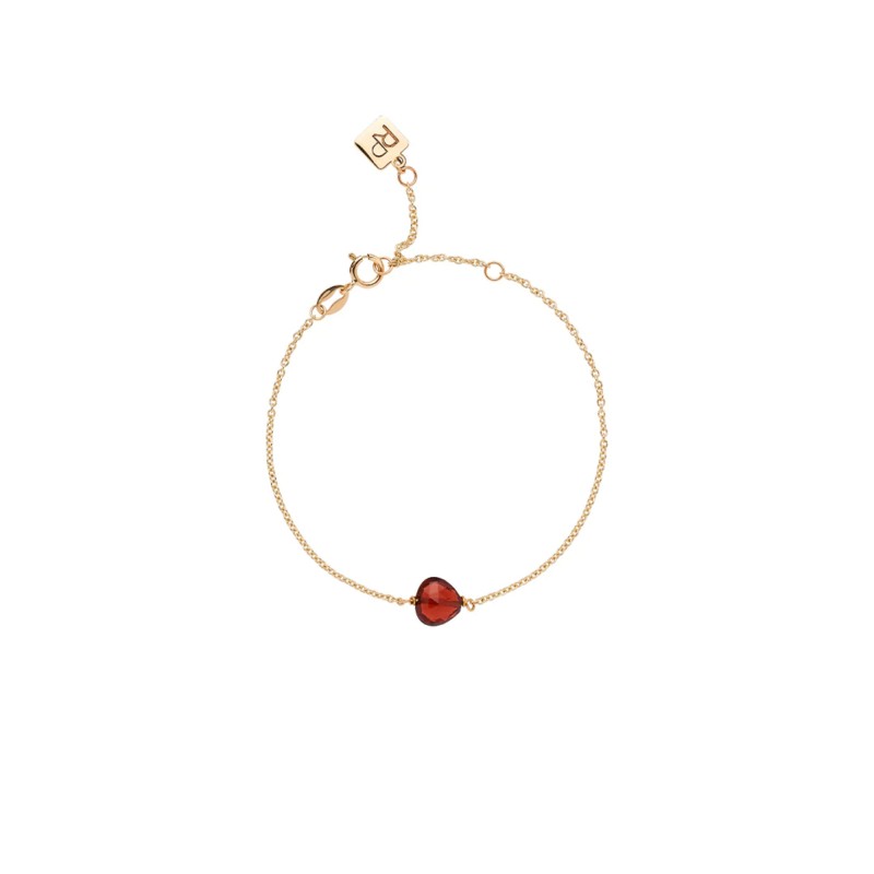 Bracciale in oro giallo 9 carati e con semino in granato sfaccettato.