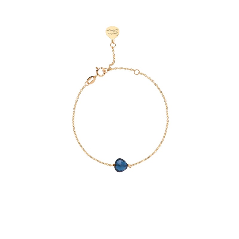 Bracciale in oro giallo 9 carati e con semino in topazio london blue sfaccettato.