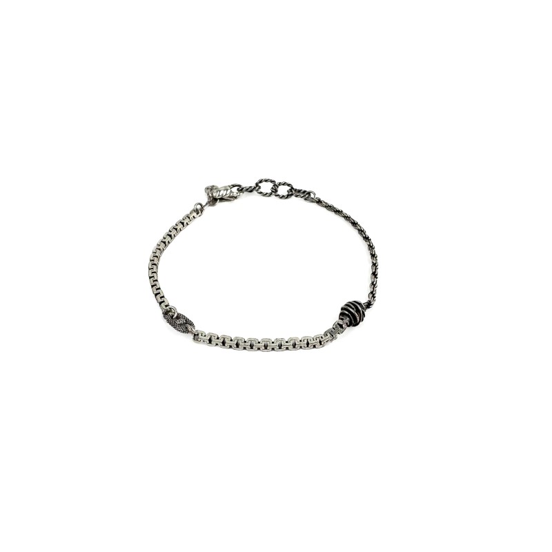 Bracciale in argento a tre segmenti con catena torchon e veneziana spessa, alternati da nodo in argento e maglia traversino lavorata.