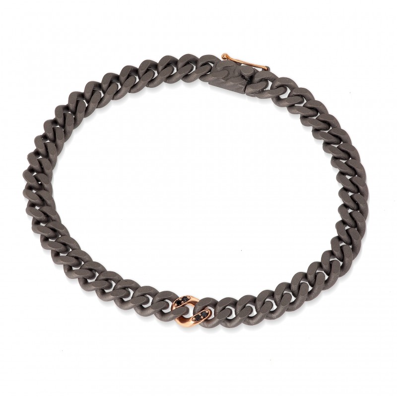Bracciale uomo linea groumette in titanio, diamanti black e oro rosso 18 kt.