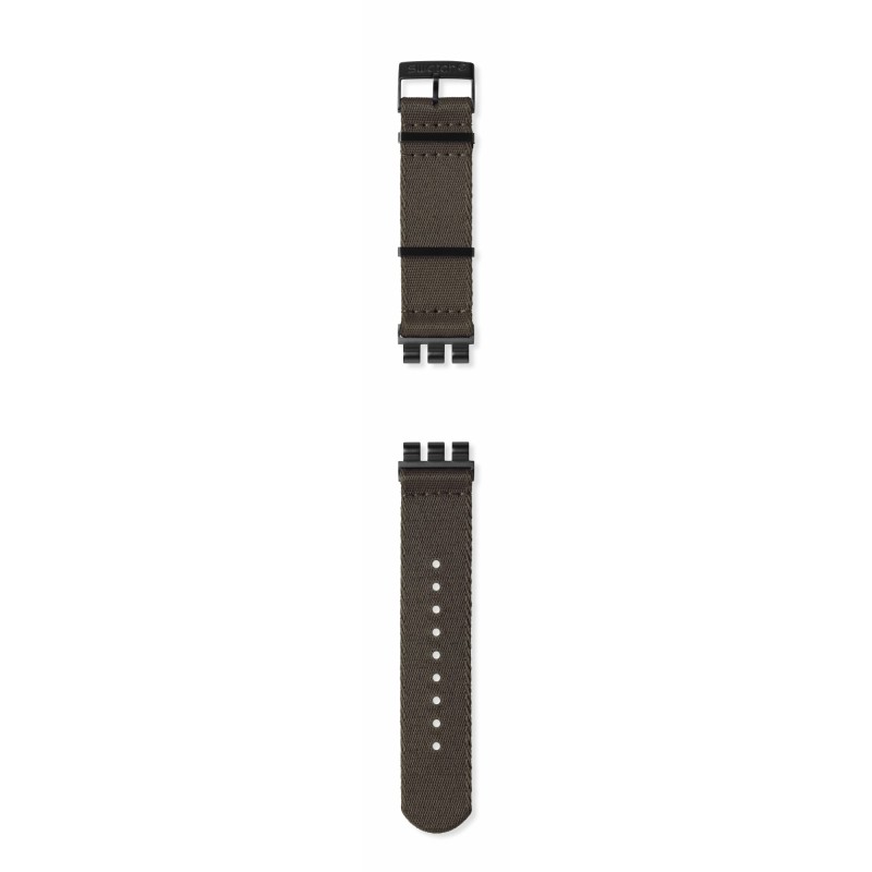 Cinturino in tessuto verde militare con fibbia in acciaio pvd nero per modello Swatch New Irony Chrono.