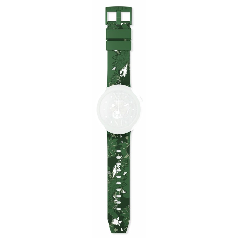 Cinturino in silicone verde con stampa a fantasia per modello Swatch Big Bold.