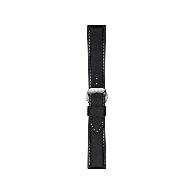 Cinturino originale Tissot in pelle di vacchetta nera e cuciture in filo bianco con chiusura a farfalla in acciaio inossidabile.
