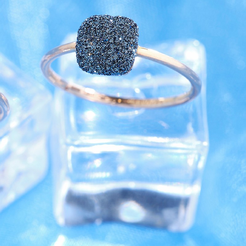 Anello a filo in oro rosa 18 kt con cubetto piccolo con finitura in polvere di diamanti grigia.