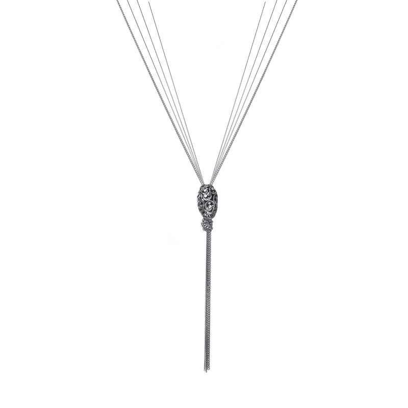 Collana multifilo in argento brunito con 1 shiva lingam intagliato.