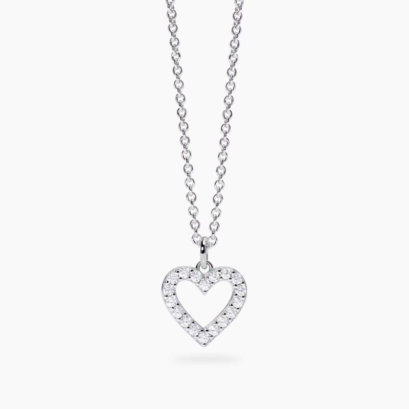Girocollo regolabile in argento rodiato e catena rolò con ciondolo cuore con diamanti lab-grown 0,01 ct.