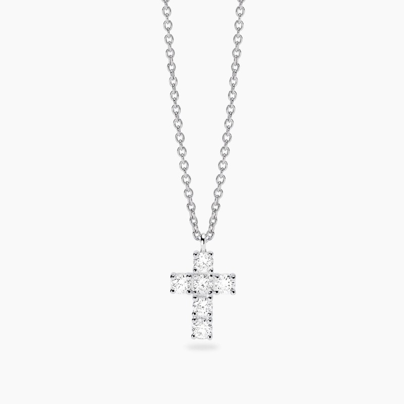 Girocollo regolabile con catena rolò in argento rodiato con croce in diamanti lab-grown 0,06 ct ciascuno.