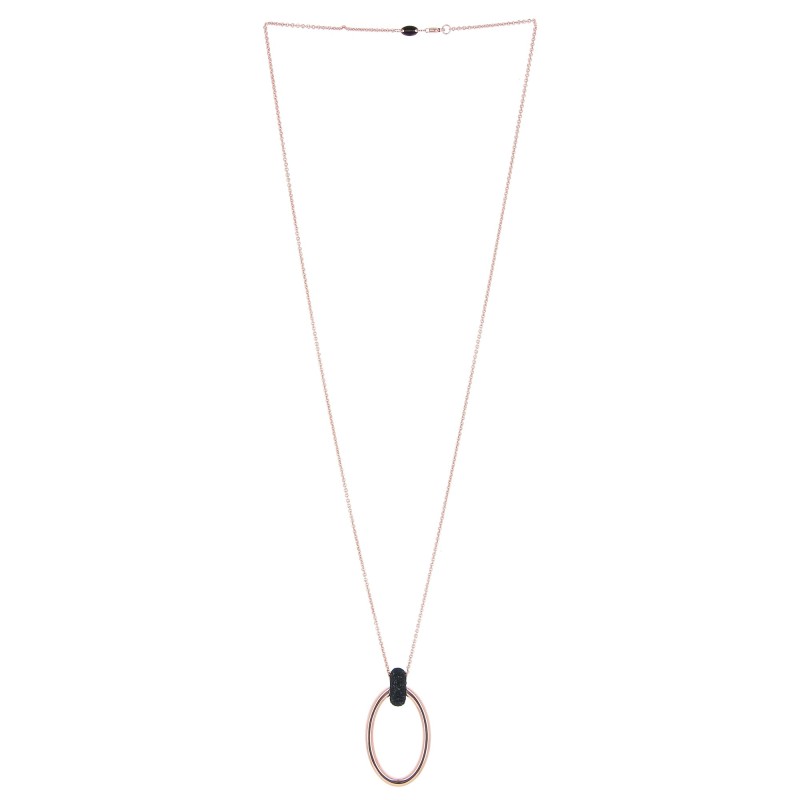 Collana ovale della collezione POLVERE DI SOGNI in argento con finitura in oro rosa lucido e polvere di diamanti nera.