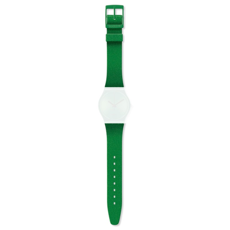 Cinturino in silicone verde con glitter e fibbia in plastica per modello Swatch Original Gent.