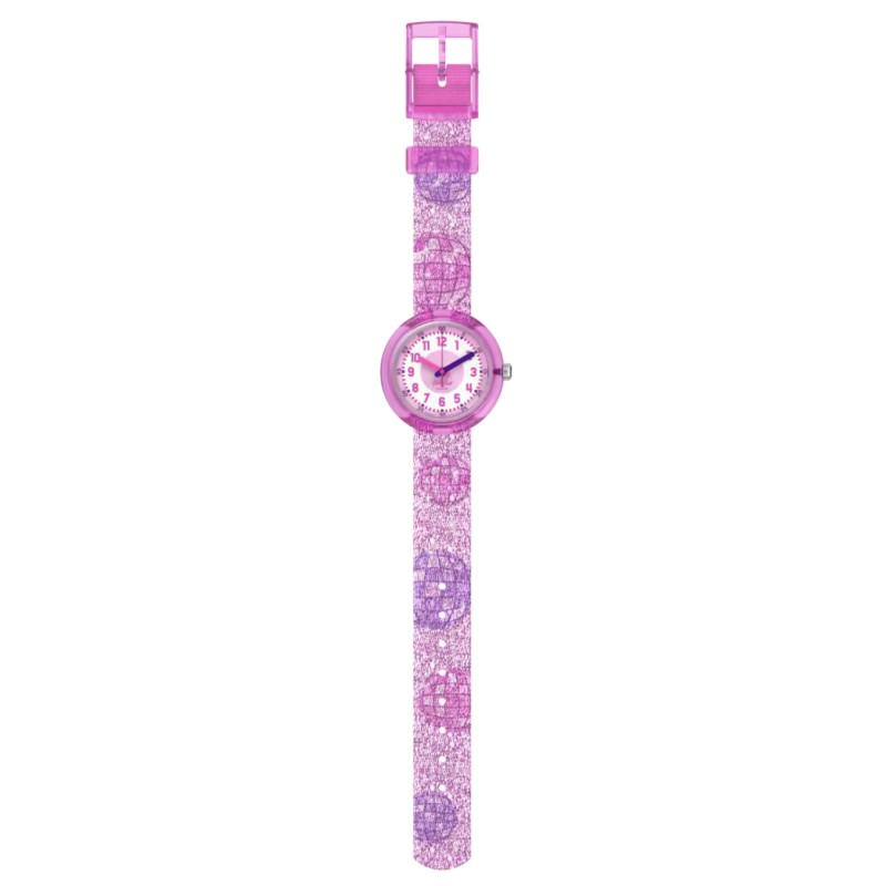 DISCO TIME è un incantevole orologio per bambini decorato con sfere stroboscopiche rosa e viola, cinturino metallizzato e cassa trasparente rosa. Divertente ed educativo, è il regalo ideale per aiutare i piccoli ballerini a leggere l’ora con un tocco di glamour.