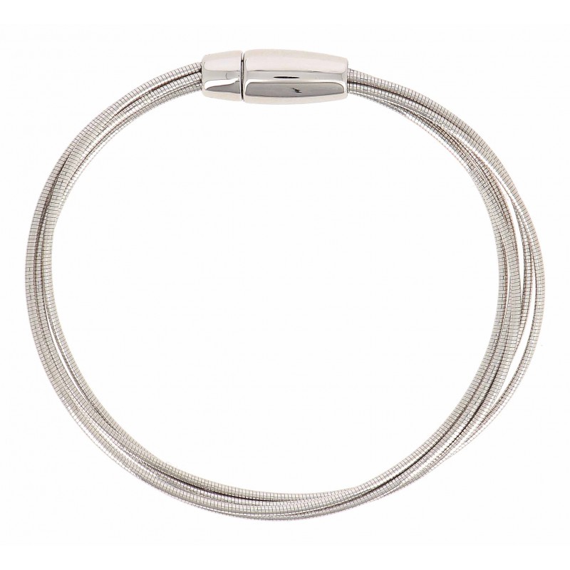 Bracciale DNA SPRING in argento composto da 5 fili con finitura rodio. Chiusura magnetica.