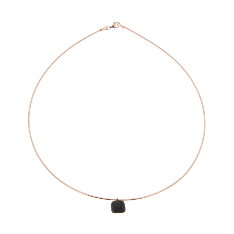 Collana DNA SPRING in argento con finitura oro rosa e cubetto medio pendente con finitura polvere di diamanti nera.