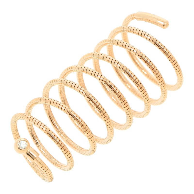 Anello della linea DNA SPRING in argento a spirale morbida con diamante naturale taglio brillante su castone e finitura oro giallo.