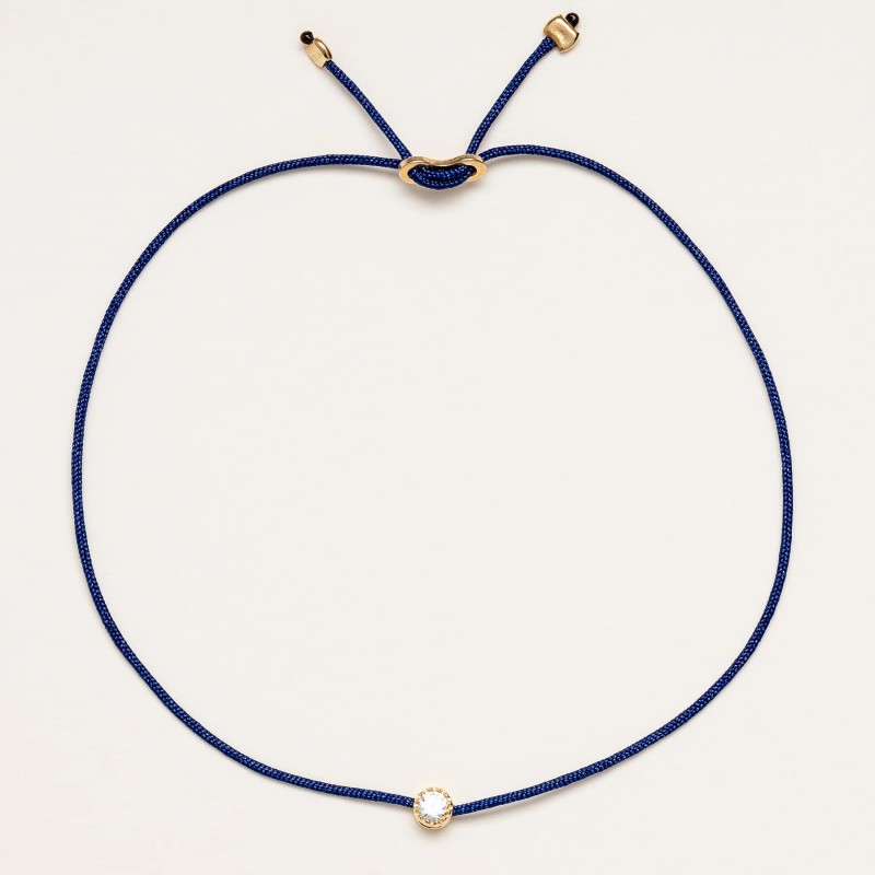Bracciale regolabile dal design essenziale con filo in tessuto e punto luce centrale che cattura delicatamente la luce. Minimal e raffinato, è pensato per essere indossato ogni giorno, da solo per un look discreto oppure abbinato ad altri gioielli per uno stile contemporaneo e sofisticato. Un dettaglio luminoso che impreziosisce il polso con eleganza.