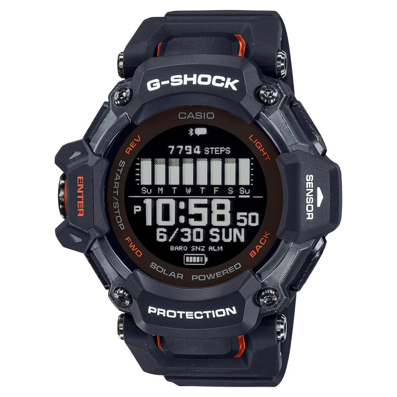 Andate oltre con il G-SQUAD GBD-H2000, una gamma di orologi multisport G-SHOCK con cardiofrequenzimetro e GPS. Questo orologio è ricco di funzioni per monitorare tutti i tipi di allenamento. Misurate la frequenza cardiaca con il sensore ottico, utilizzate l'accelerometro per contare i passi o per fare una nuotata. I sensori possono accedere alla libreria dello Smartwatch Polar per analizzare l'allenamento e il livello di recupero dopo il sonno. Che si corra, si vada in bicicletta o si nuoti, questo orologio è indispensabile e vi equipaggia perfettamente per qualsiasi sport. Il cinturino è realizzato in plastica a biomassa di mais, prodotta da materiali organici rinnovabili. Ricaricatelo tramite USB o energia solare e restate in forma!