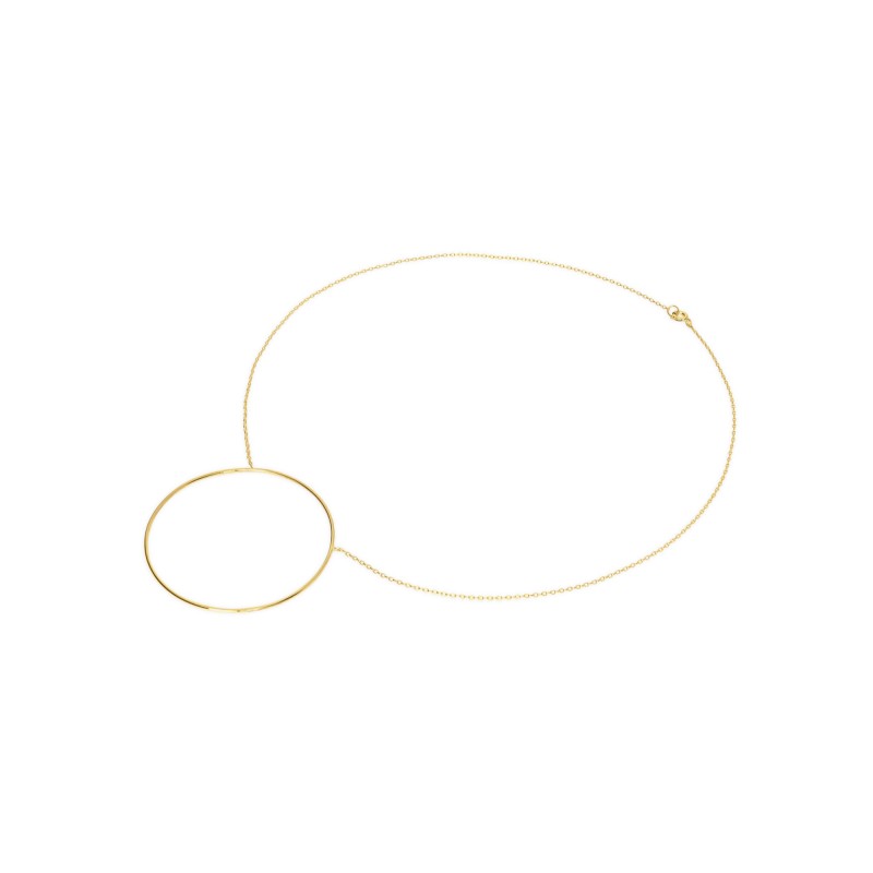 Collana girocollo con catena rolò e cerchio grandissimo a filo in oro giallo 9 kt.