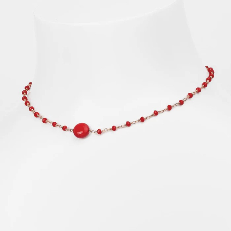 Girocollo realizzato in Italia, in legno d'ulivo laccato e smaltato a mano su una base palladio anallergico placcato oro 24 carati. Misure Girocollo: 38,5 cm allungabili a 41cm.