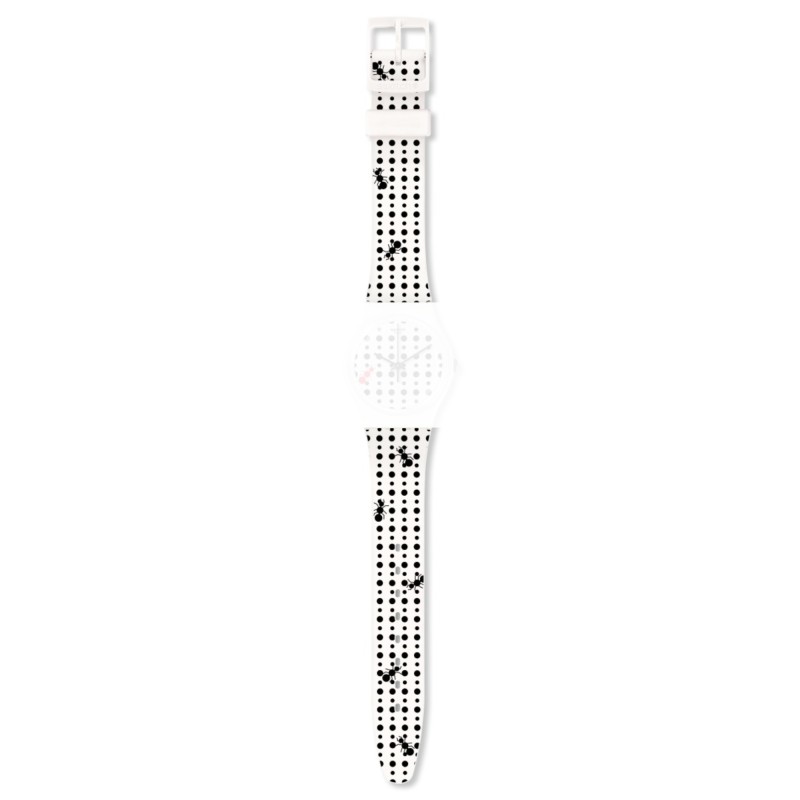 Cinturino in silicone bianco in fantasia con fibbia in plastica lucida per modello Swatch Original Gent.