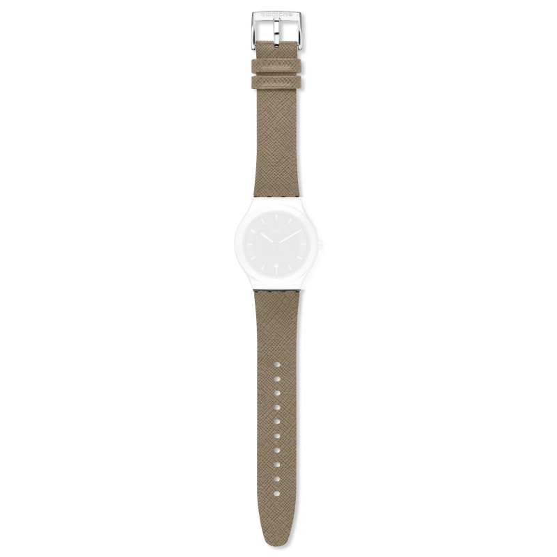 Cinturino in pelle tinta fango con stampa lucertola e fibbia in acciaio per modello Swatch Irony Big Classic.