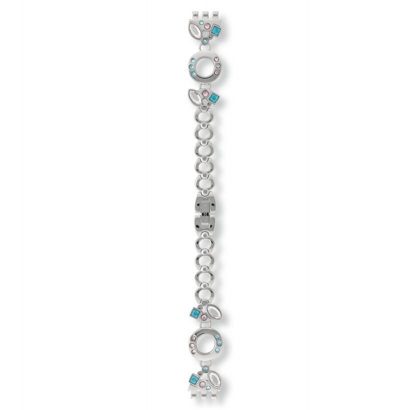 Cinturino in acciaio e cristalli Swarovski multicolore per modello Swatch Original Lady.