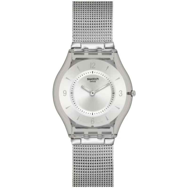 L’ultrasottile METAL KNIT AGAIN (SS08M100M) ha un bracciale regolabile in maglia milanese di acciaio inossidabile, perfettamente coordinato al quadrante spazzolato argentato.