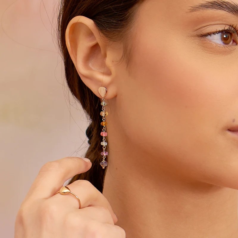 Mono orecchino in Argento 925 placcato oro rosa con pietre naturali.