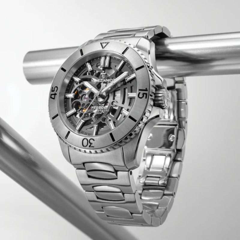 Nereide Ultraleggero è un orologio con un'identità forte e un'anima sportiva. Presenta un design ricercato, arricchito da un cinturino in acciaio che segue in modo armonioso la forma della cassa. La sua elasticità e flessibilità offrono un comfort eccezionale al polso, garantendo al contempo una resistenza superiore all'abrasione e alle variazioni di temperatura estreme, comprese condizioni da -30°C a +70°C.