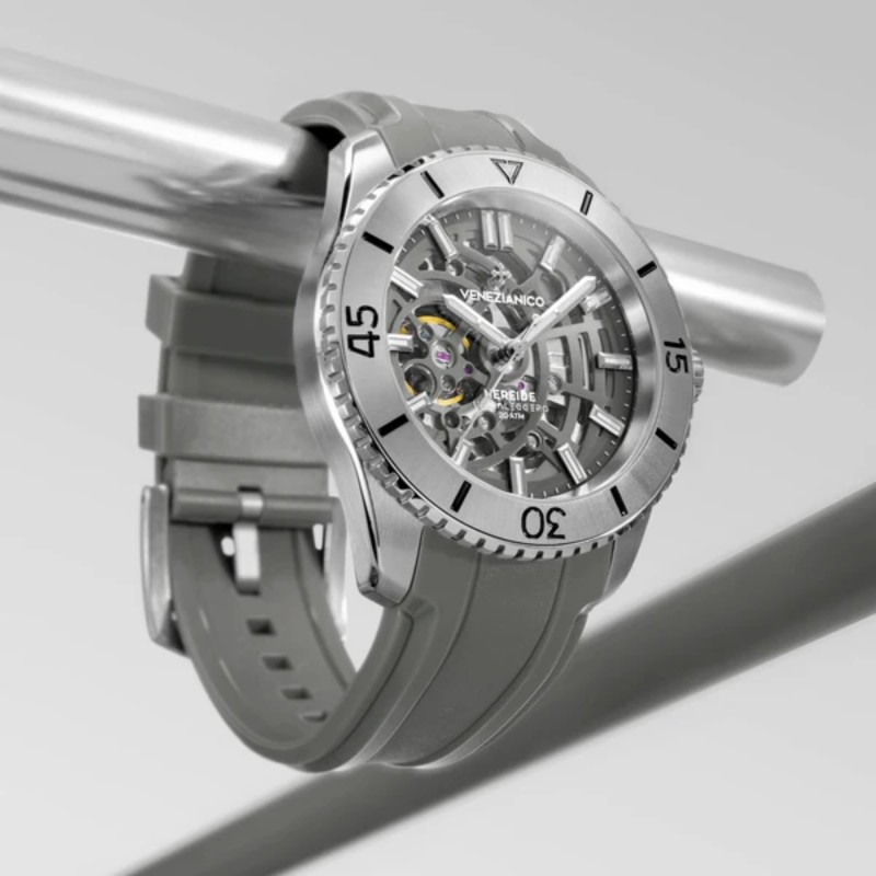 Ultraleggero è l’orologio più innovativo della serie Nereide e si ispira all’Uomo Vitruviano, simbolo del Rinascimento e della fine della contrapposizione tra arte e scienza. La singolare geometria del quadrante scheletrato si integra perfettamente con il corpo del movimento, attraverso un’originale soluzione costruttiva brevettata che consente maggior leggerezza e minore ingombro.