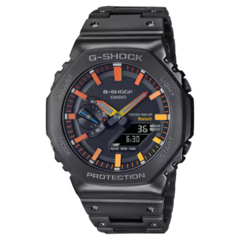 Sii libero, resta fedele al tuo stile ed esprimiti utilizzando tutti i colori dell'arcobaleno. Da qui nasce una collezione di orologi interamente in metallo realizzati per il 40° anniversario di G-SHOCK. Caratterizzato dalla distintiva cassa ottagonale del modello 2100, questo modello in acciaio inossidabile crea un sorprendente contrasto cromatico con il quadrante nero, in cui risaltano gli indici e le lancette decorati con gradazioni di colore dal viola al blu. Raggiungi il massimo dello stile con un capolavoro di design arricchito con i colori dell'arcobaleno.