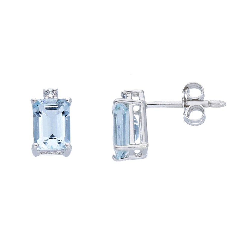 Orecchini in oro bianco 18 kt con acquamarina taglio smeraldo e punto luce diamante naturale taglio brillante.