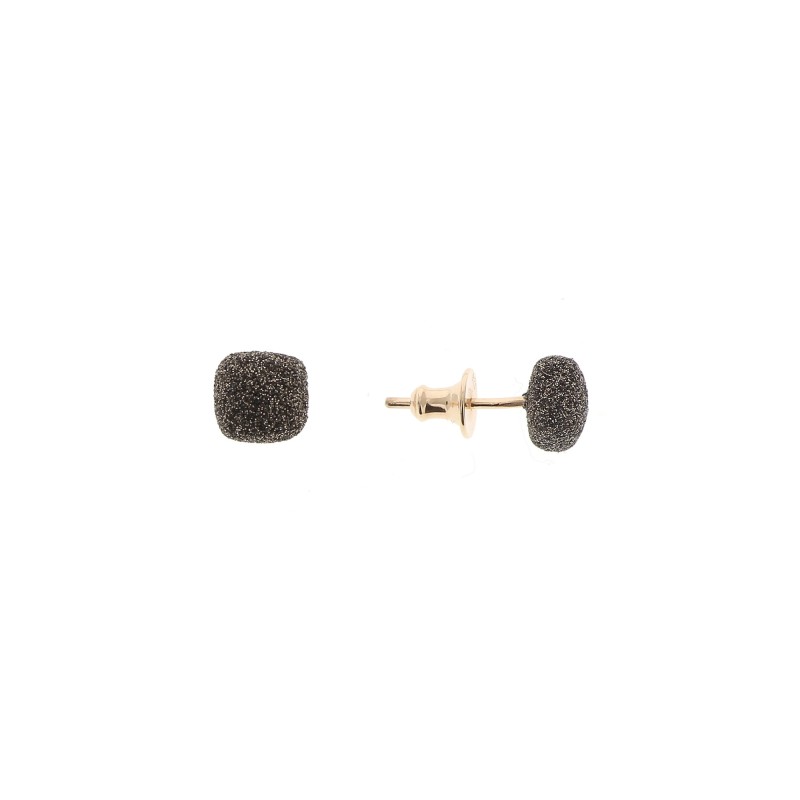 Orecchini a cuscino piccolo in argento rosato impreziositi da polvere di diamanti colore bronzo.