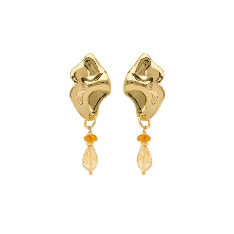 Orecchini realizzati a mani in argento 925 placcato oro giallo e topazi citrino.