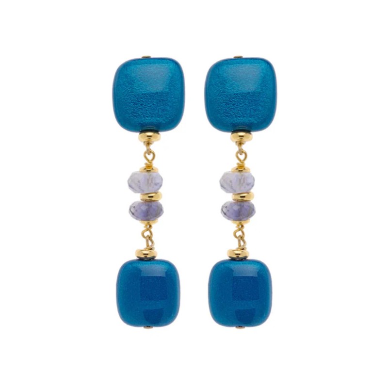 Orecchini in Argento 925 placcato oro giallo e legno laccato e smaltato a mano.