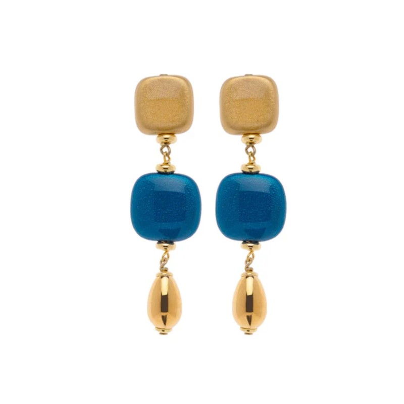 Orecchini in Argento 925 placcato oro giallo e legno laccato e smaltato a mano.