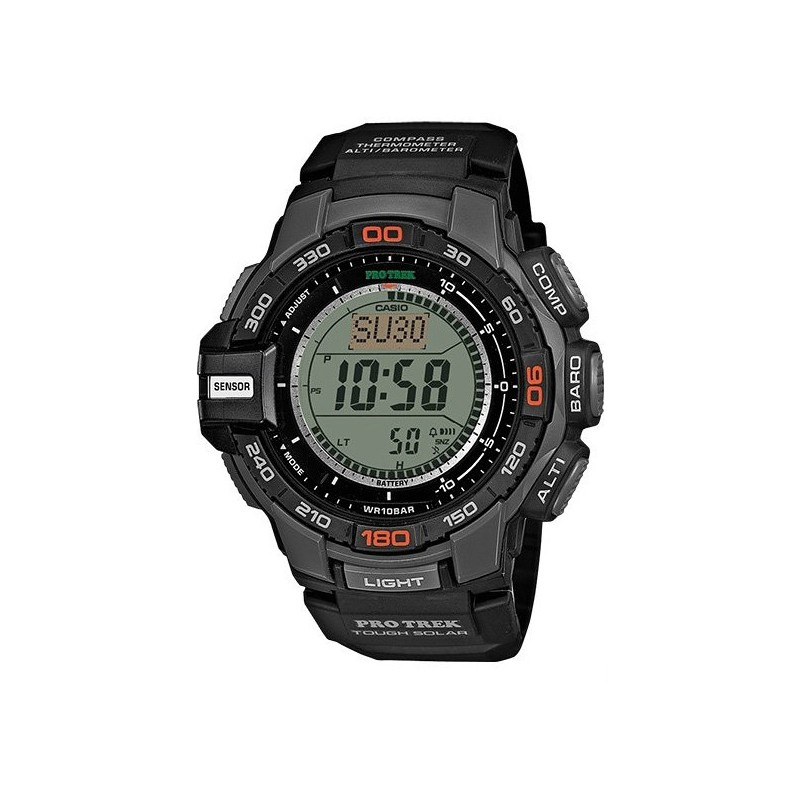 Gli ampi pulsanti laterali e l'accesso con un solo tasto alla bussola digitale, alla pressione barometrica, all'altitudine e alle letture della temperatura consentono di avere a portata di mano informazioni importanti. Altre caratteristiche includono la ricarica solare impermeabilità fino a 100 metri di profondità e altro ancora.