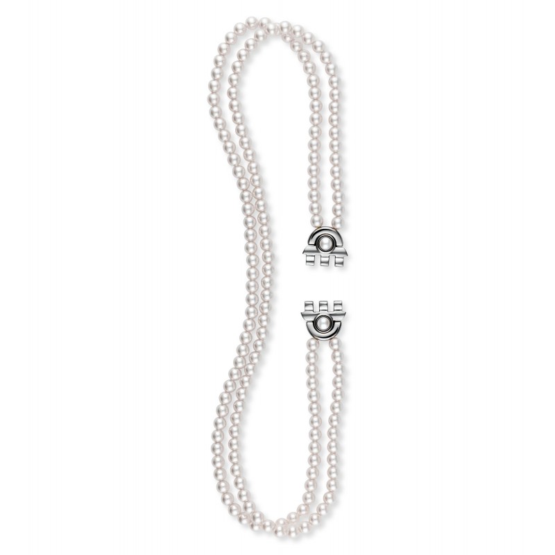 Cinturino elastico a doppio giro in perle sintetiche color madreperla per modello Swatch Original Lady.